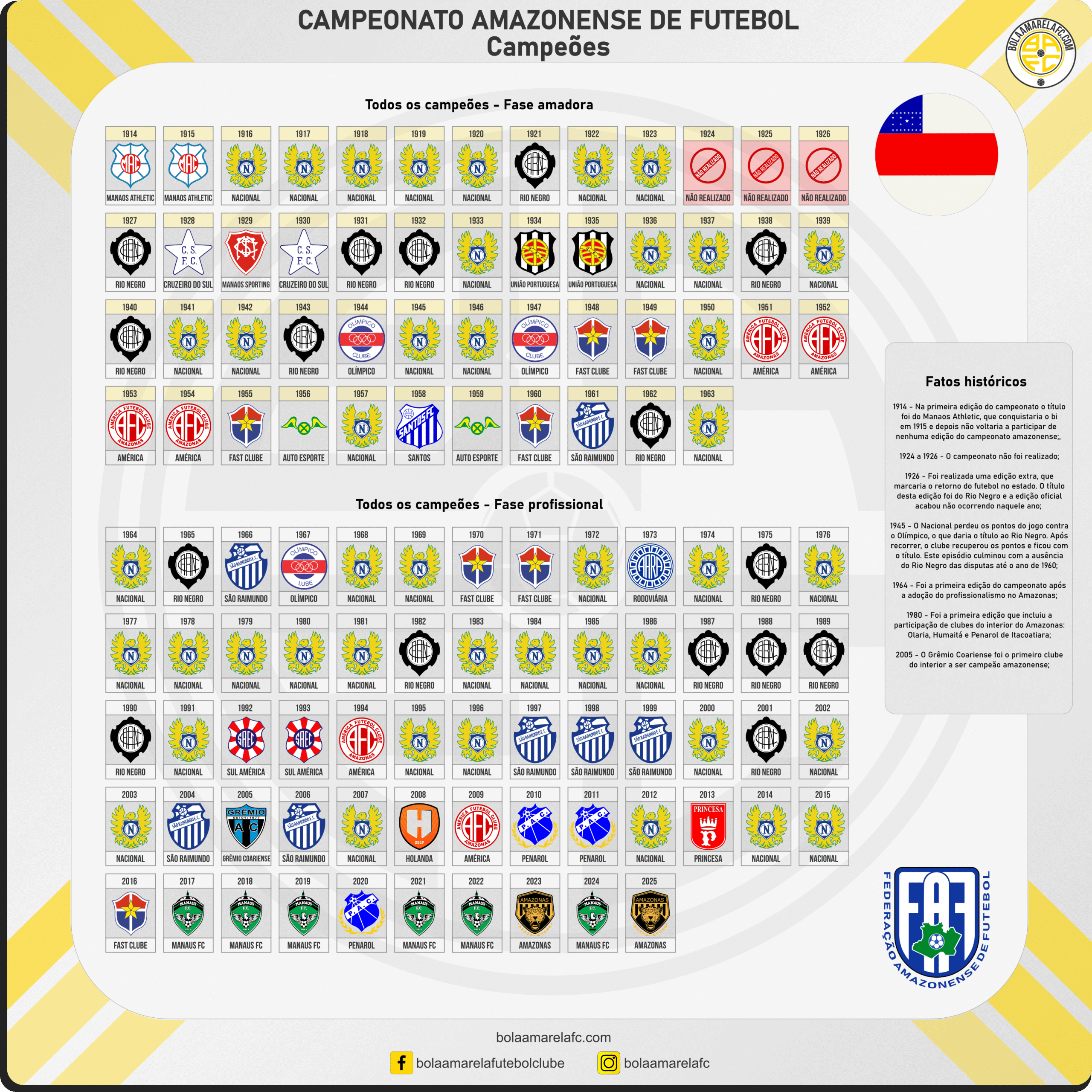 HISTÓRIA: CAMPEONATO AMAZONENSE DE FUTEBOL CHEGA SUA CENTÉSIMA EDIÇÃO. Disponível em: < https://www.acritica.com/channels/esportes/news/campeonato-amazonense-de-futebol-chega-sua-centesima-edicao>. Acesso em: 13 maio 2021.